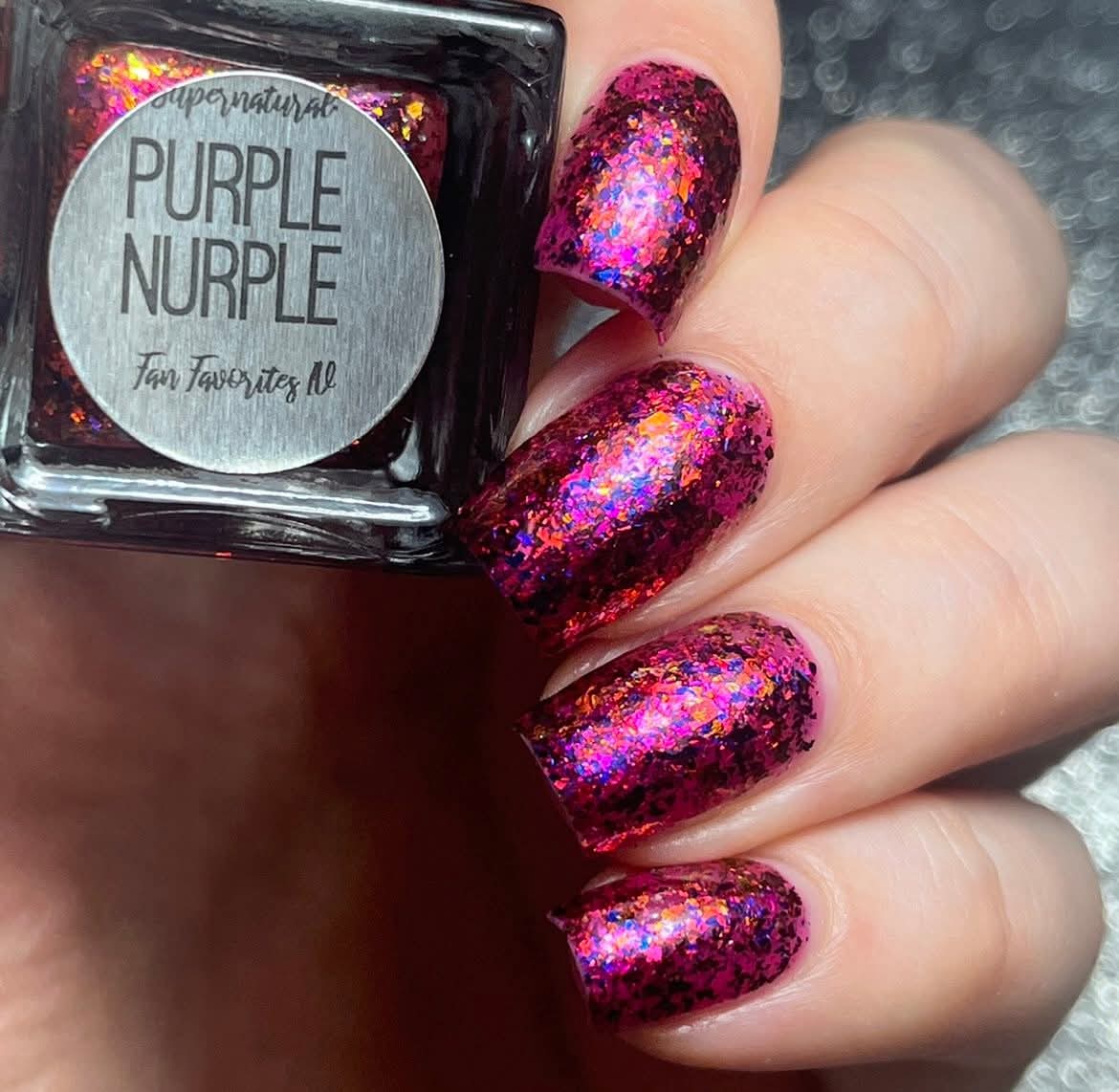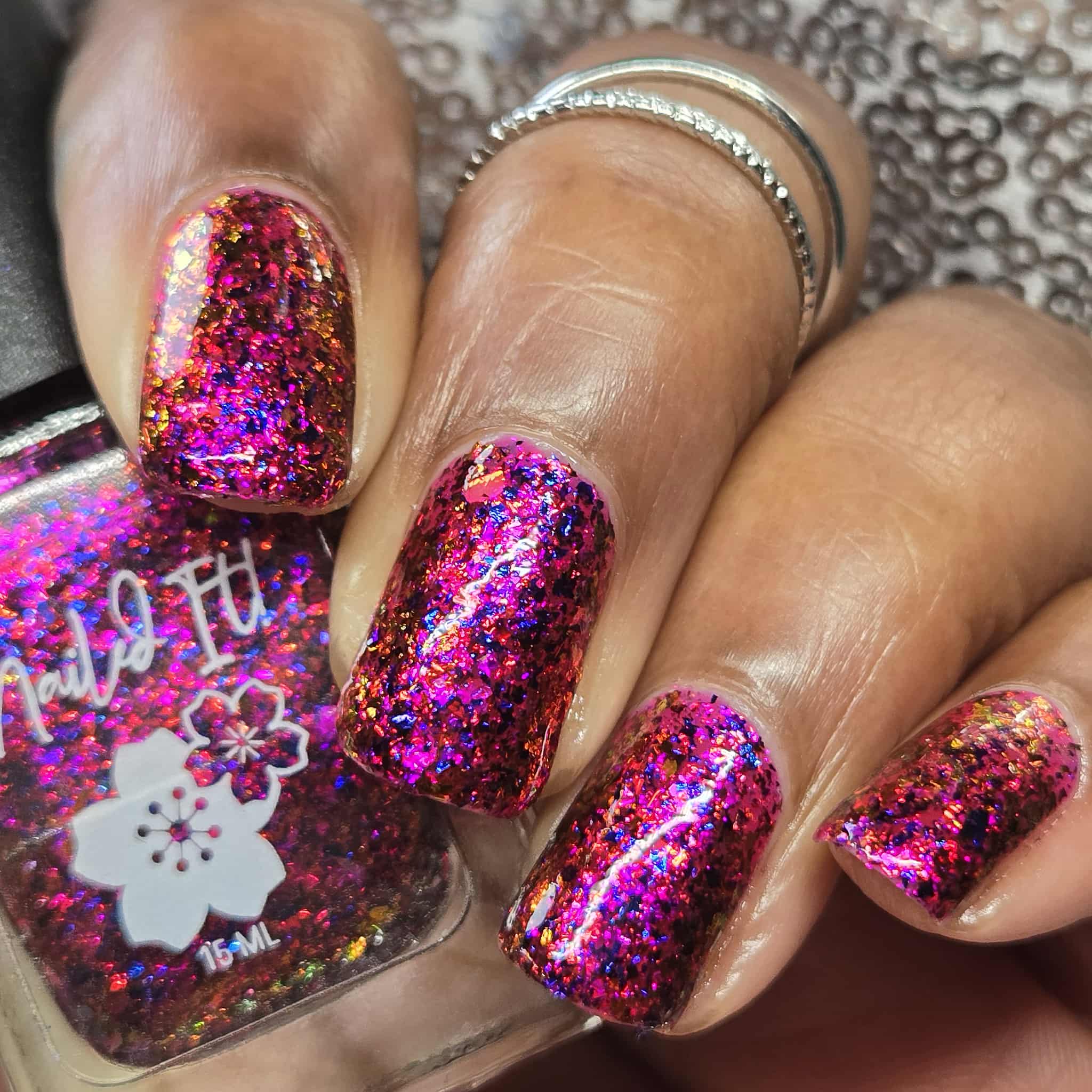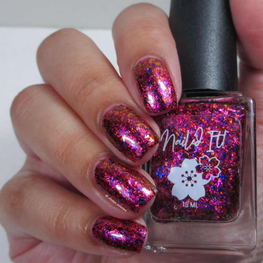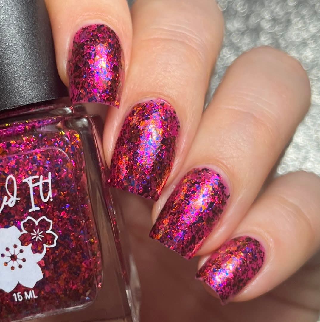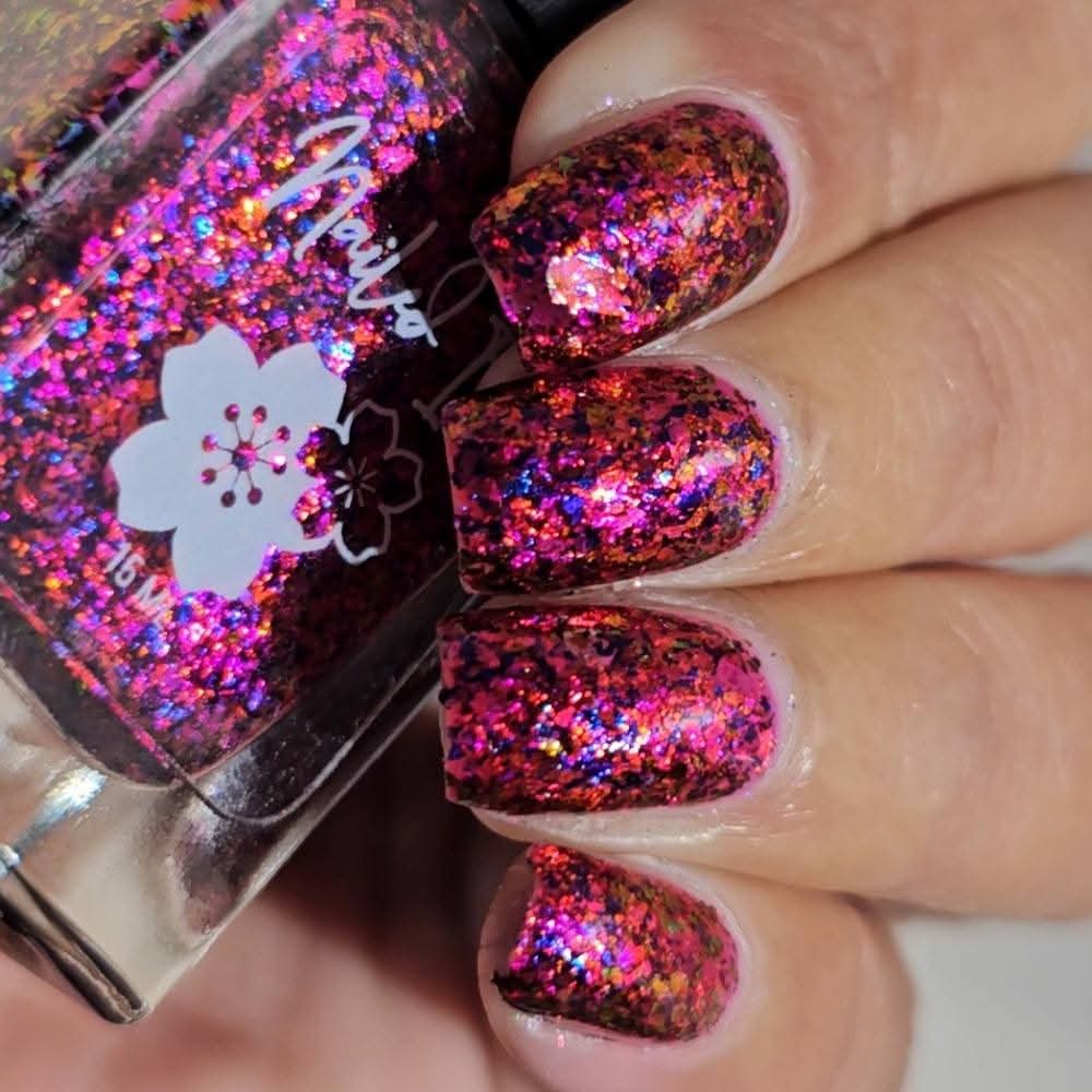 A magenta base with blue/purple UCC flakies, pink/gold crystal flakies, and red/gold UCC flakies.